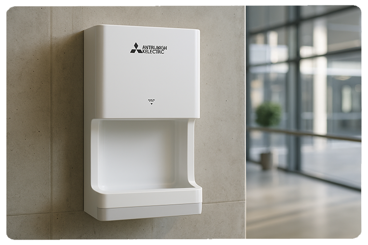 เครื่องเป่ามือมิตซูบิชิ ระบบเป่ามือแห้งรวดเร็ว สะอาด และประหยัดพลังงาน สำหรับอาคารพาณิชย์